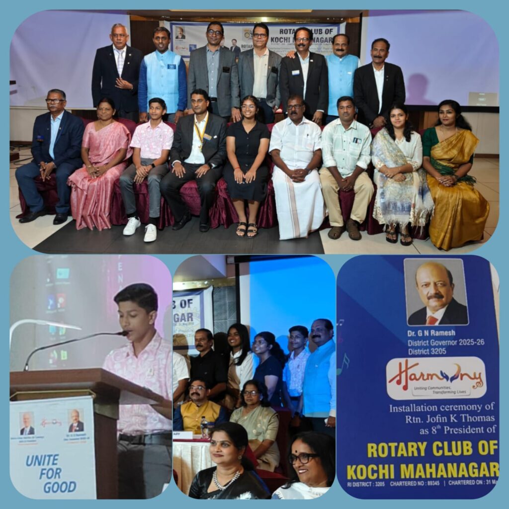 The TSPS Interact Club members – Johnz Siju (President)and Sadhika Shinod (Secretary in charge) – along with the teachers in charge, Ms. Anijomol P.J and Ms. Jain Sanoop , attended the installation ceremony of Rotary Club Kochi Mahanagar on 13th July 2025 at the Marine Inn Hotel, Marine Drive, Ernakulam .